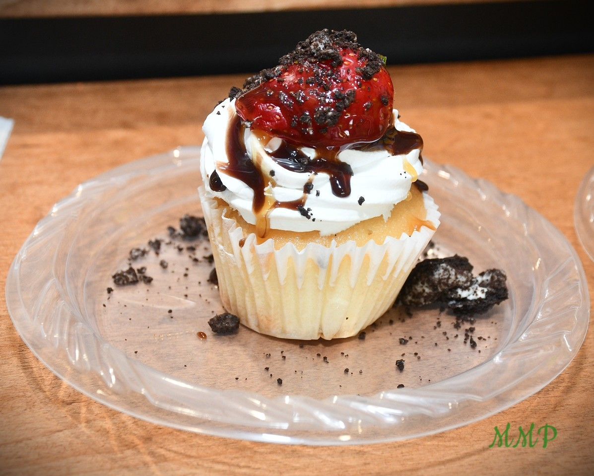 Includes cupcakes, an assortment of fruit, candy, chocolates, nuts and sprinkles.